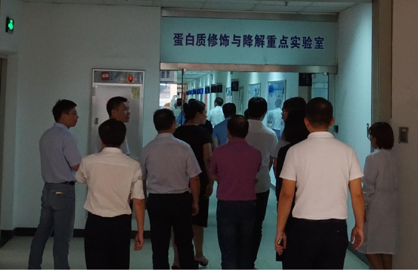 9月18日下午,广东省蛋白质修饰与降解重点实验室建设项目现场考察评审会议在我校番禺校区A1-602会议室召开。广东省科技厅邀请的评审专家组及学校科研处、基础医学院负责人、实验室项目组主要成员参加会议。实验室负责人刘金保教授首先作项目建设情况汇报,向与会专家简要介绍了实验室基础条件、主要研究方向、运行管理机制等。专家组随后对实验室进行了现场考察。项目组成员对专家组提出的问题和建议逐一进行了回应。